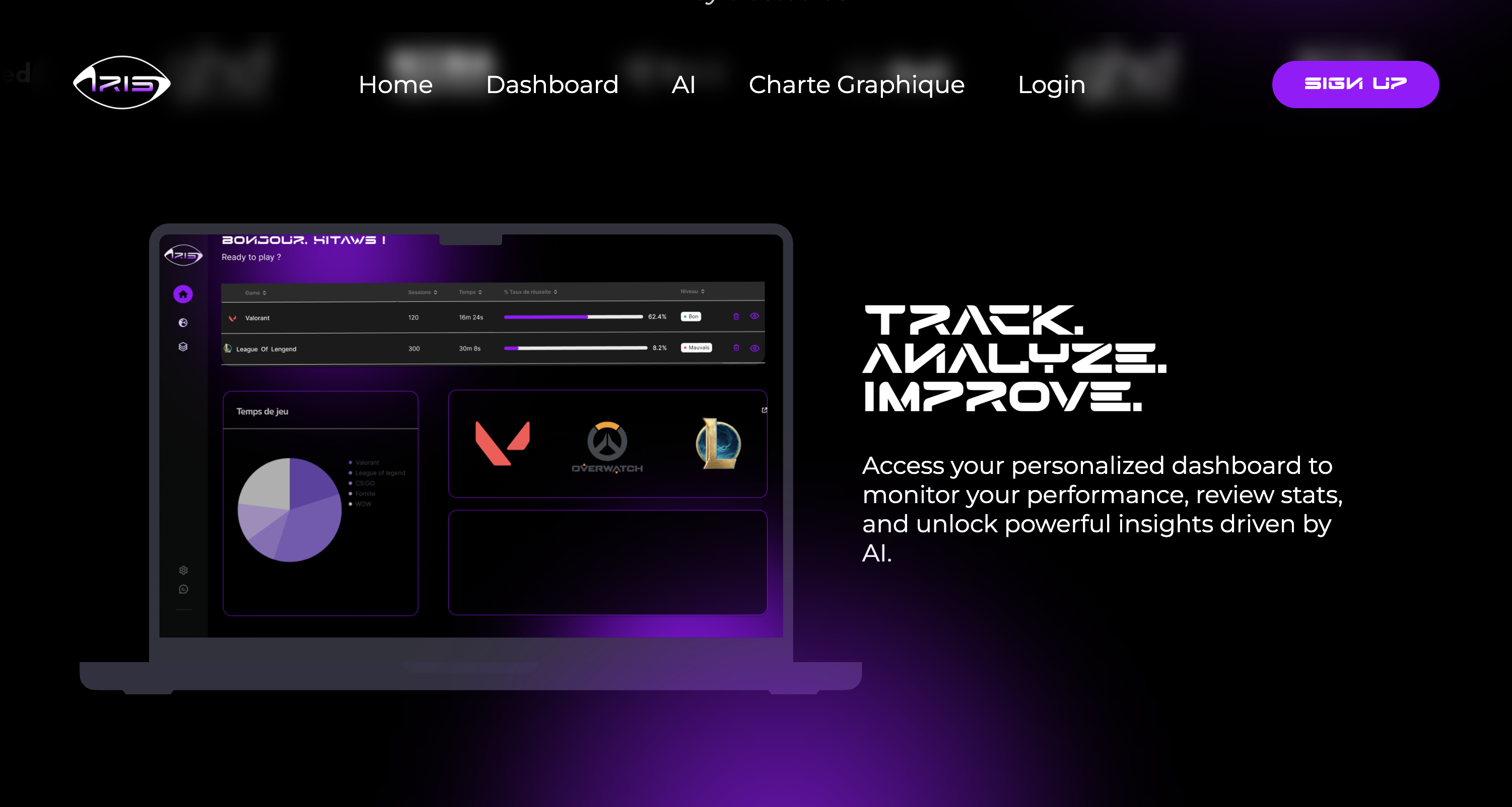 Iris - Hackathon14-04-2025 - 16-04-2025Iris est une application utilisant l'IA pour aider les utilisateurs à analyser leurs parties de jeux vidéos. Elle permet ensuite de donner des conseils personnalisés pour améliorer les performances.