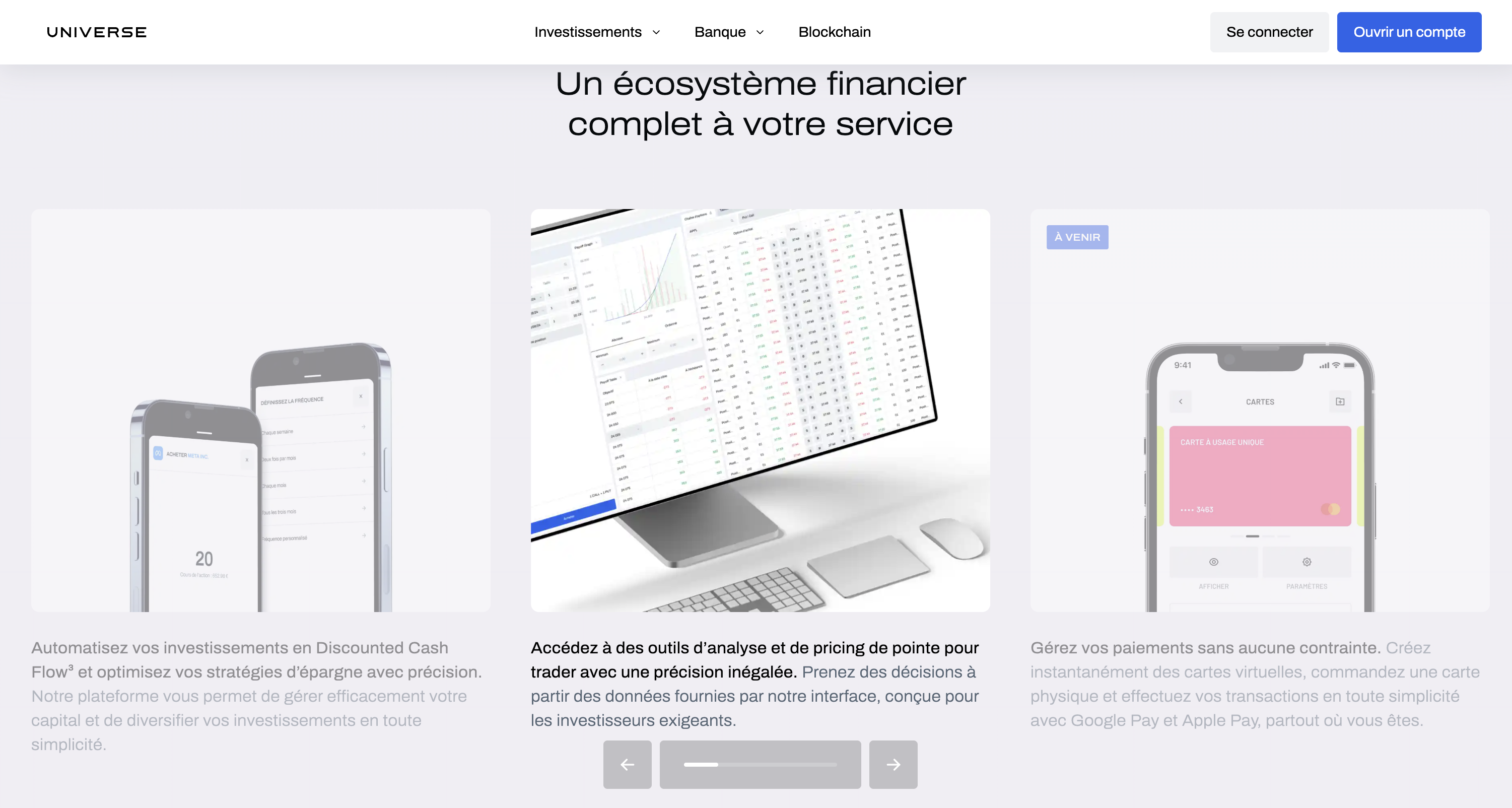 Universe-bank06-2023 - 06-2025Universe-bank est une application web et mobile de gestion d'actif qui permet aux utilisateurs de gérer leurs comptes, de suivre leurs dépenses et d'effectuer des transactions en ligne.